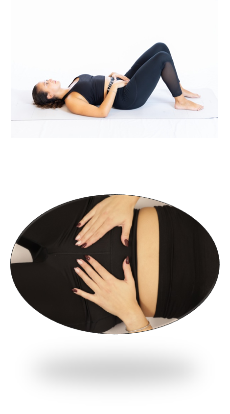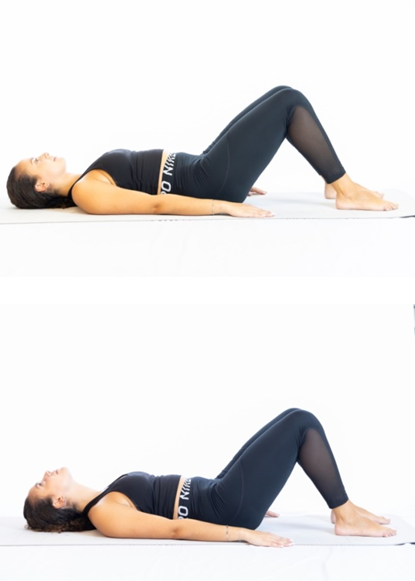 Στην ύπτια θέση η ίδια άσκηση μπορεί να γίνει με mini ball, power circle ή foam roller ανάμεσα στους μηρούς για καλύτερη αίσθηση των μυών του περινέου.